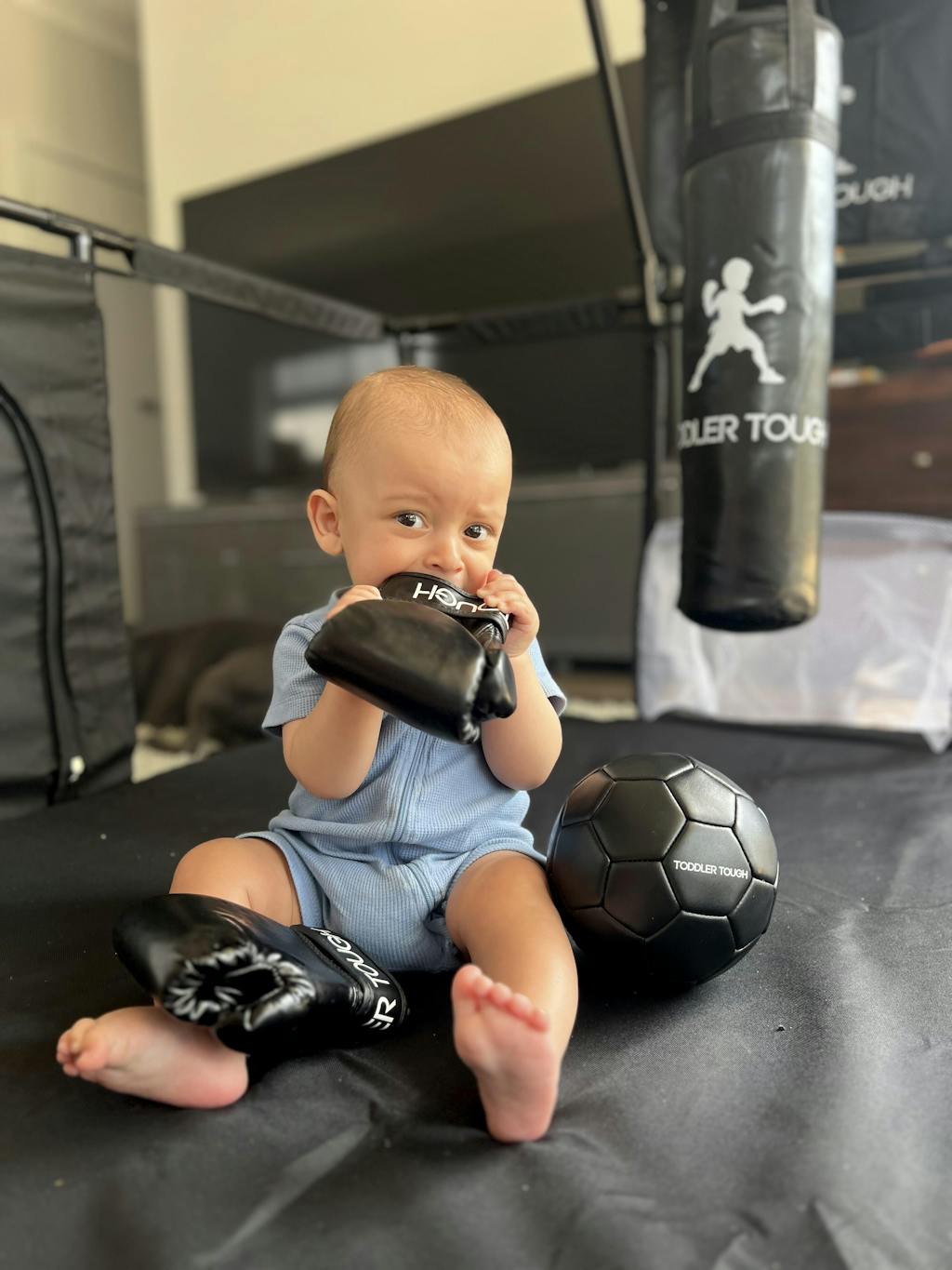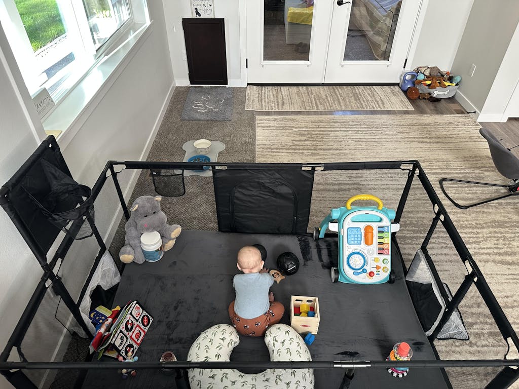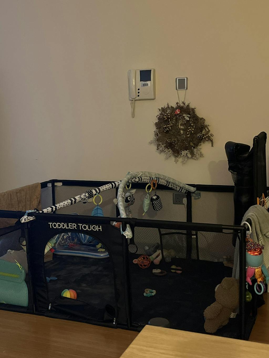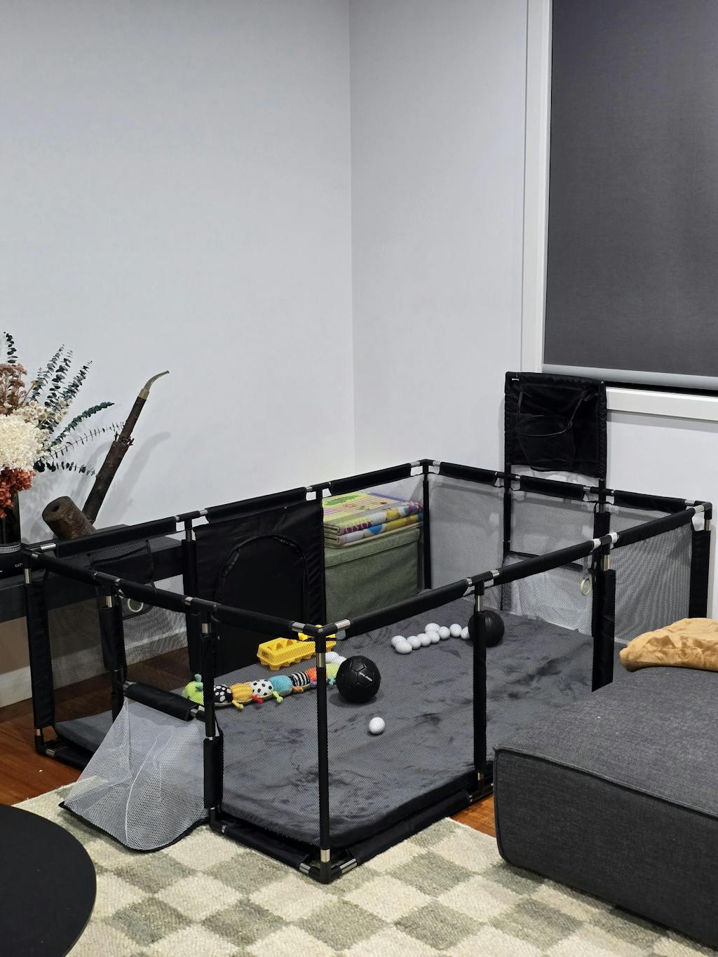 After researching extensively, I was initially leaning towards a basic mesh playpen since my son loves swinging on his cot, and a wooden playpen wasn’t a viable option. Fortunately, I discovered Toddler Tough! I bought the grey version to match my beige living room, and it blends perfectly. I love this playpen for its durability, easy cleaning (just spray and wipe), and the fact that it will grow with my son's abilities. He enjoys crawling around freely and safely, and he's starting to stand and reach the top rail. Soon, he’ll be shooting hoops, punching the boxing bag, and kicking goals. I appreciate that I won’t need to upgrade as he grows. Highly recommend—it's also lightweight and perfect for moving outside on warmer days.