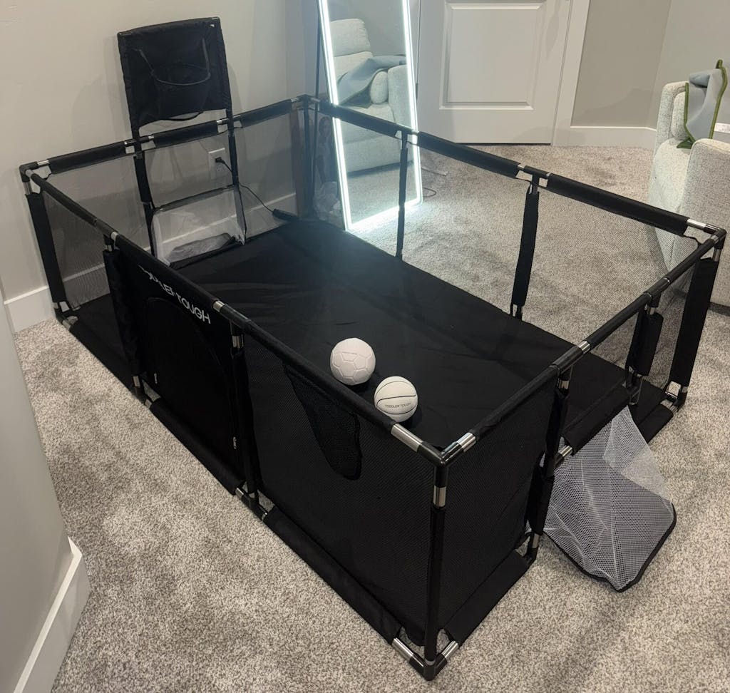It’s super sturdy, easy to set up, and has quickly become our toddler’s favorite hangout spot. The sports theme adds a fun, active vibe, and it really holds up to everyday use. We’ve used it indoors and outdoors, and it gives us peace of mind knowing he’s safe while still having a blast. Highly recommend for active toddlers!